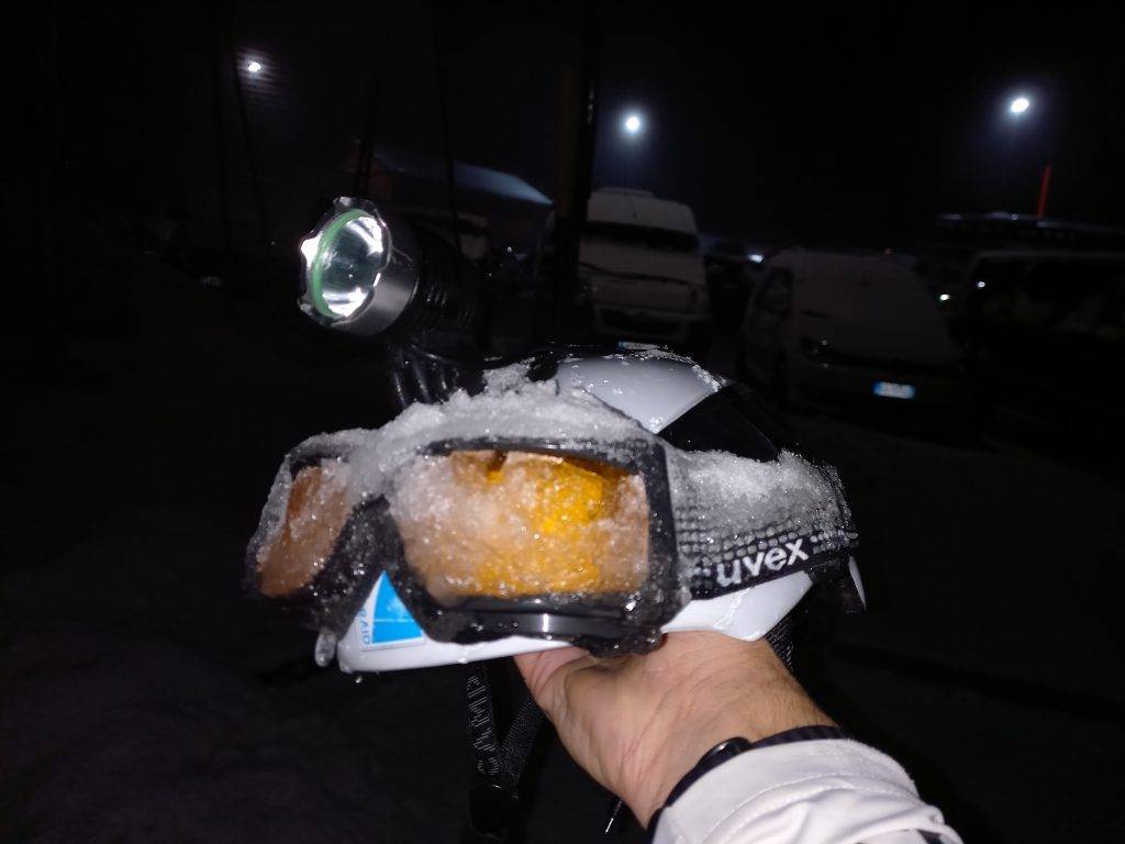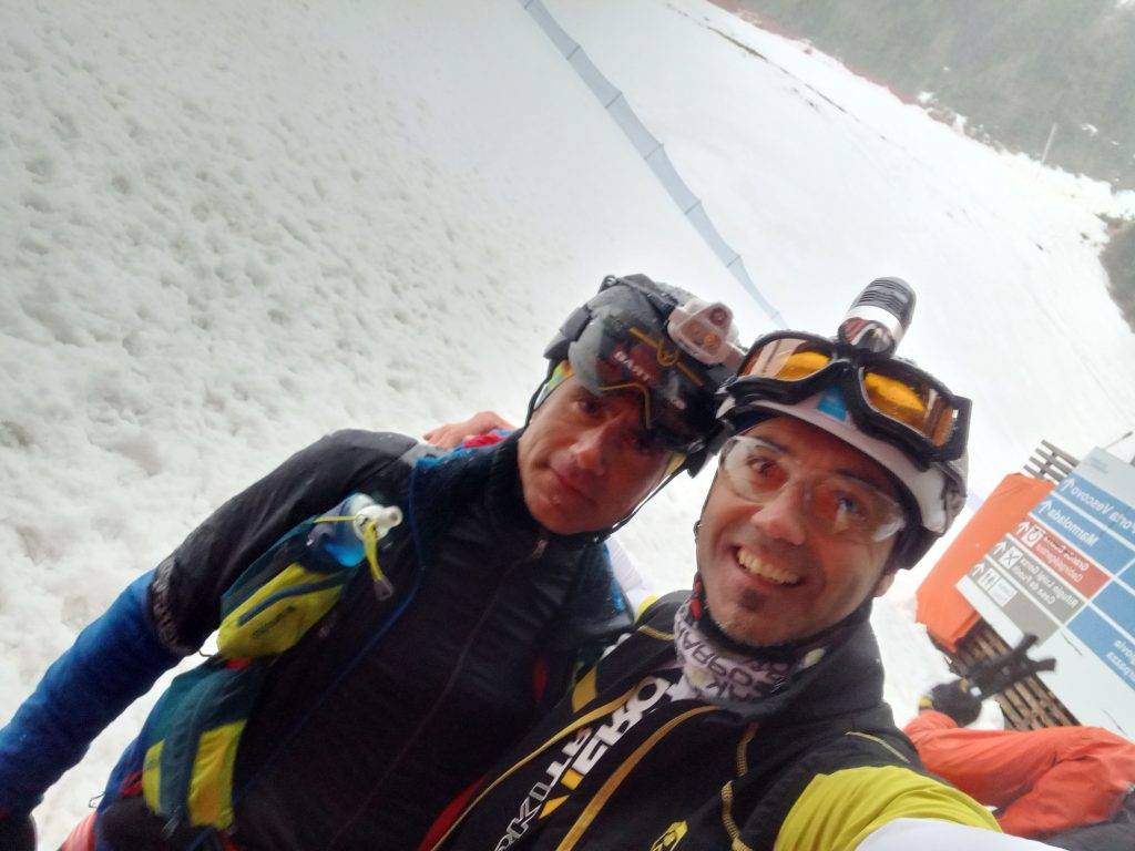 Dobbiamo proprio amarlo questo sport per essere qui il venerdì sera “mizi come poiati” vero Paolino? Peccato che eravamo partiti con grandi ambizioni di battere il muro delle 4 ore sfiorato nel 2019 ma ci siamo dovuti arrendere al maltempo; pazienza per la salita, gli sci andavano veloci, ma in discesa era impossibile fare il tempo: lo dice la velocità massima raggiunta, solo 77 km/h quando negli anni passati si sfioravano i 100 km/h.