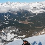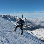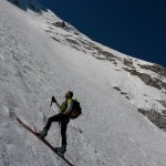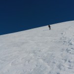Saliti con i ramponi la cresta fino in cima, ci siamo portati gli sci nella speranza di scendere sci ai piedi, ma oggi le condizioni nono invogliavano, e forse anche la testa non era pronta per tenere di spigoli su certe pendenze sopra salti di roccia. Dallo ski-depot in giù super sciata a sud verso gli orti della Regina e verso le piste di Campiglio; anche oggi abbiamo indovinato la tempistica, ma una grossa slavina nel finale ci ricorda che niente è come sembra e basta un piccolo cambiamento per cambiare una splendida giornata in una tragedia.