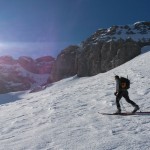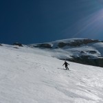 Abbiamo approfittato di una giornata fredda e tersa che ha consolidato il manto smagrito da una settimana di gran caldo.