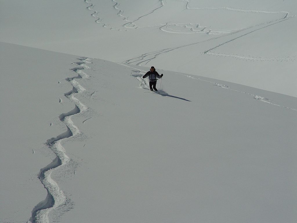 Quando si dice una bellissima giornata di Aprile; quando si dice una temperatura ideale, ed una recente nevicata primaverile capace di ammantare di un bianco accecante le montagne dell’Alto Adige; quando si dice un gruppo di amici che si divide: i più temerari, i “giovani” scelgono la diretta per il canale, gli “anziani” scelgono la strada già battuta, più facile ma più lunga.