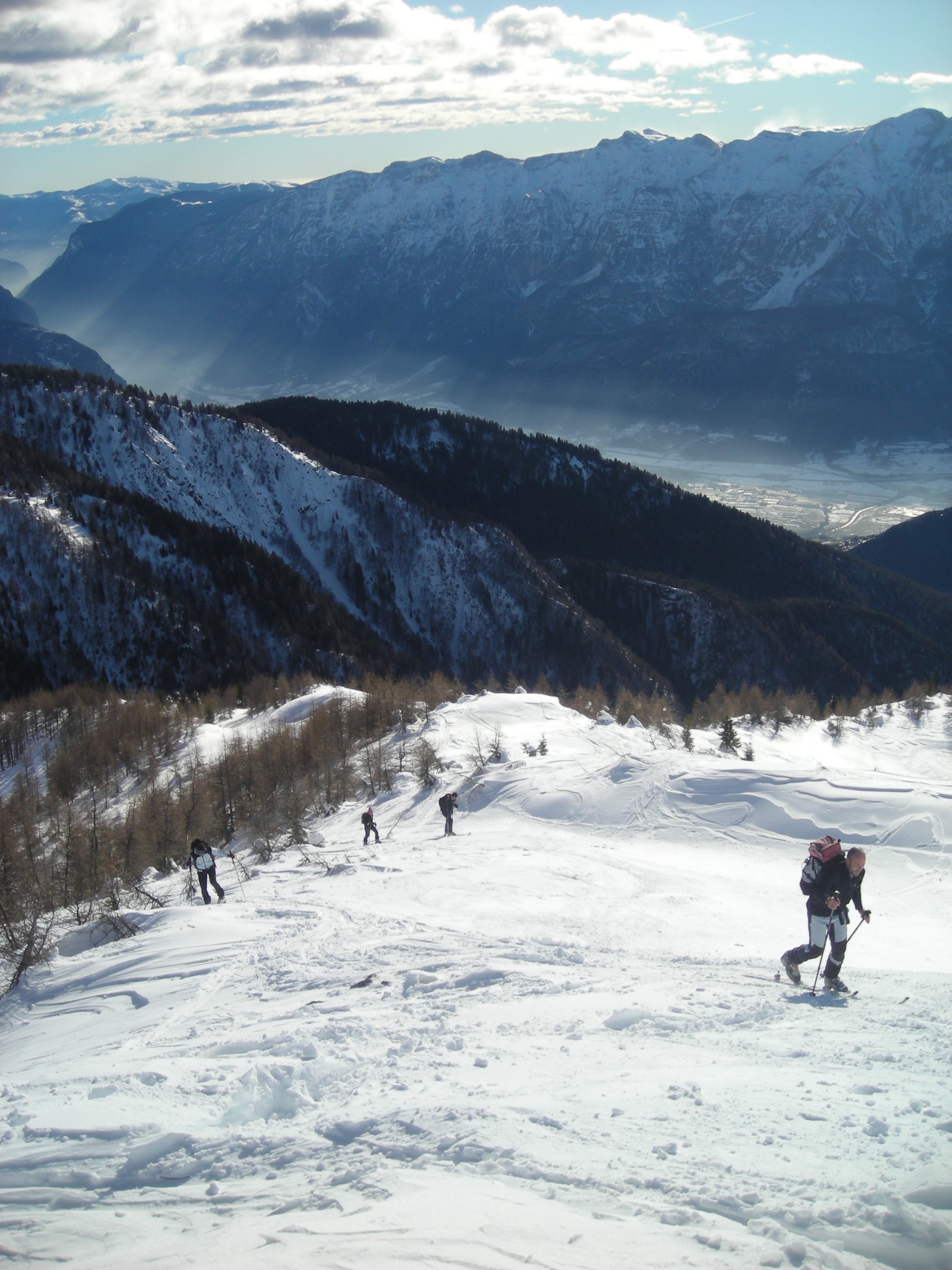 Ma no che il ciste è una montagna amica; e poi bsta scegliere la traccia giusta, che risale lo spallone facendo slalom tra i pezi; posto sempre bello, e con neve più che buona. Compagnia ottima con pranzo finale a Le Betulle di Torcegno.